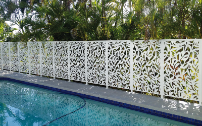 Pool fencing regulations state that there can be no horizontal climbing member greater than 10mm within the pool fence. A limited amount of our designs can be made to have horizontal climbing members within them less than 8mm. Surcharges may apply. We recommend contacting your pool fencing certifier to discuss how to ensure laser cut screens around your pool will satisfy Australian Pool safety Standards (AS1926.1 – 2012) before contacting our sales team. Gates will require self closing hinges installed to pool fencing regulations, as per AS1926.1 – 2012.