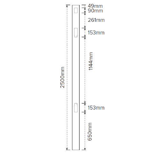 Dimensions 2500mm(w) x 127mm (h) x 127mm (d)