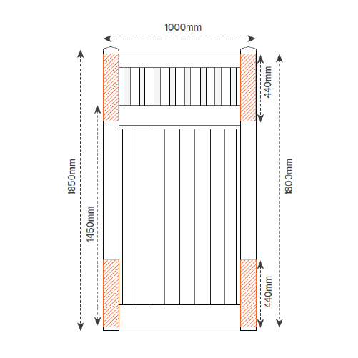 1 x Single 1000mm wide Gate - 1000mm(w) x 1800mm(h)