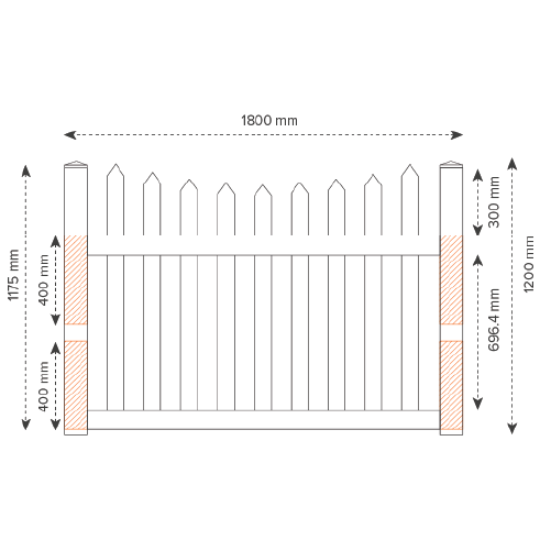 1 x Single 1800mm wide Gate - 1800mm(w) x 1200mm(h)