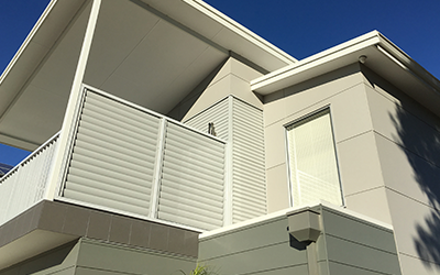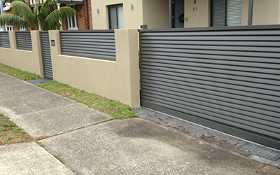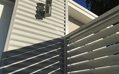 Our Louvred Aluminium Welded Slat System is the perfect way to create privacy and security for your property while adding unique architectural style. Our Welded Louvred Slats are manufactured from 100 x 20mm Elliptical 6063 T6 Aluminium Slats typically welded to 50 x 25mm stiles using Interpon Powder Coating for superior strength and corrosion resistance.